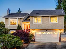 Exceptional home & neighbourhood on a huge lot at the end of a cul-de-sac in Gordon Head. Step inside, you'll love the open & modern floor plan of this bright updated home. Solid oak floors, 2 fireplaces (both gas & wood), updated lighting & a huge chef's kitchen with high end appliances & granite countertops. This home was made for entertaining! Stepping out from the family room onto the huge deck with water...