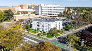 Beautifully reimagined 2bed/2bath corner unit offering approx. 1,660 sq ft of bright, updated living space in a prime location near Cook St. Village, Beacon Hill Park & the ocean. This spacious, quiet suite is set back to overlook the garden areas & features windows on three sides with southern views to the Olympic Mountains, wood-burning fireplace, engineered white oak floors, new carpet in bedrooms, and a s...